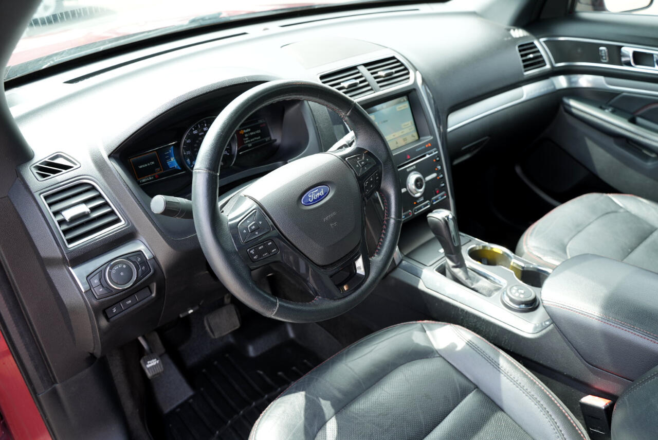 ARJ'S AUTO SALES IS PROUD TO PRESENT THIS BEAUTIFUL 2018 FORD EXPLORER SPORT 4WD! THE RUBY RED TINT METALLIC EXTERIOR OPENS TO A LUXURIOUS EBONY BLACK PERFORATED LEATHER INTERIOR. FULLY EQUIPPED WITH HEATED SEATS, HEATED STEERING WHEEL, HEATED MIRRORS, REAR CAMERA WITH REVERSE SENSING, KEYLESS ENTRY WITH REMOTE START, PUSH BUTTON START, INTERIOR AMBIENT LIGHTING, NAVIGATION, A 390-WATT PREMIUM SONY SOUND SYSTEM WITH 12 SPEAKERS, XM SATELLITE RADIO, ANDROID AUTO/APPLE CARPLAY, THREE ROWS OF FOLD DOWN SEATS, FORD SYNC, POWER DUAL-PANEL MOONROOF, POWER LIFT-GATE, CRUISE! SYNC ALLOWS FOR HANDS FREE PHONE USE AND CONTROL OF MUSIC. BOTH BACK ROWS FOLD FLAT WHEN YOU NEED TO CARRY CARGO, THE THIRD AND SECOND ROW FOLDS WITH THE PRESS OF A BUTTON. THERE ARE FEATURES EVERYWHERE IN THIS SPACIOUS EXPLORER. A 3.5 6CYL OFFERS FUEL ECONOMY AND POWER. THE FULL FEATURED 4X4 SYSTEM HAS HIGH & LOW PLUS HILL DESCENT CONTROL WITH OFF-ROAD MODE AND OTHER SETTINGS. THE 20” SPORT WHEELS HAVE LIKE NEW TIRES ON THEM PAIRED WITH A SPORT-TUNED SUSPENSION. GOTTA SEE THIS ONE!