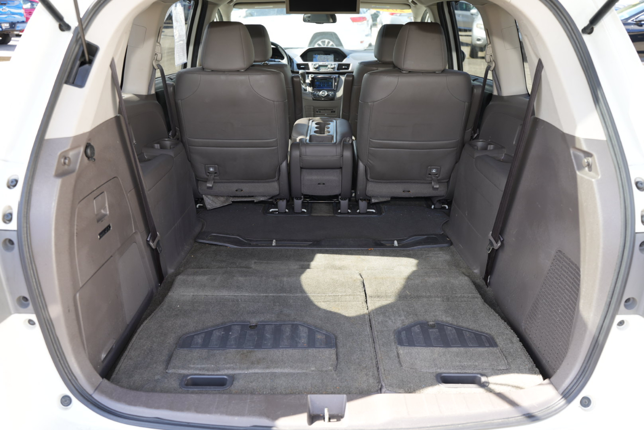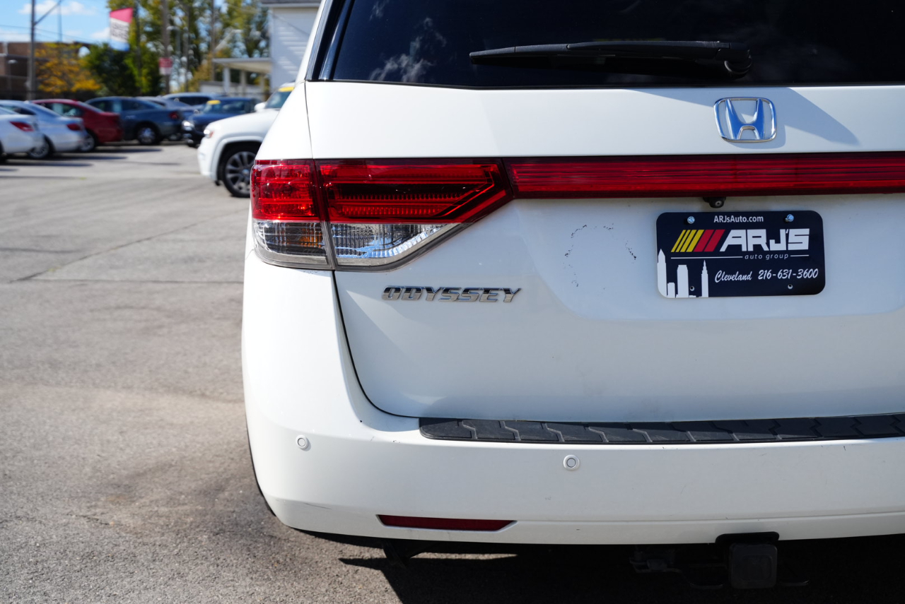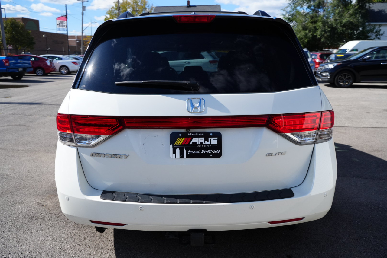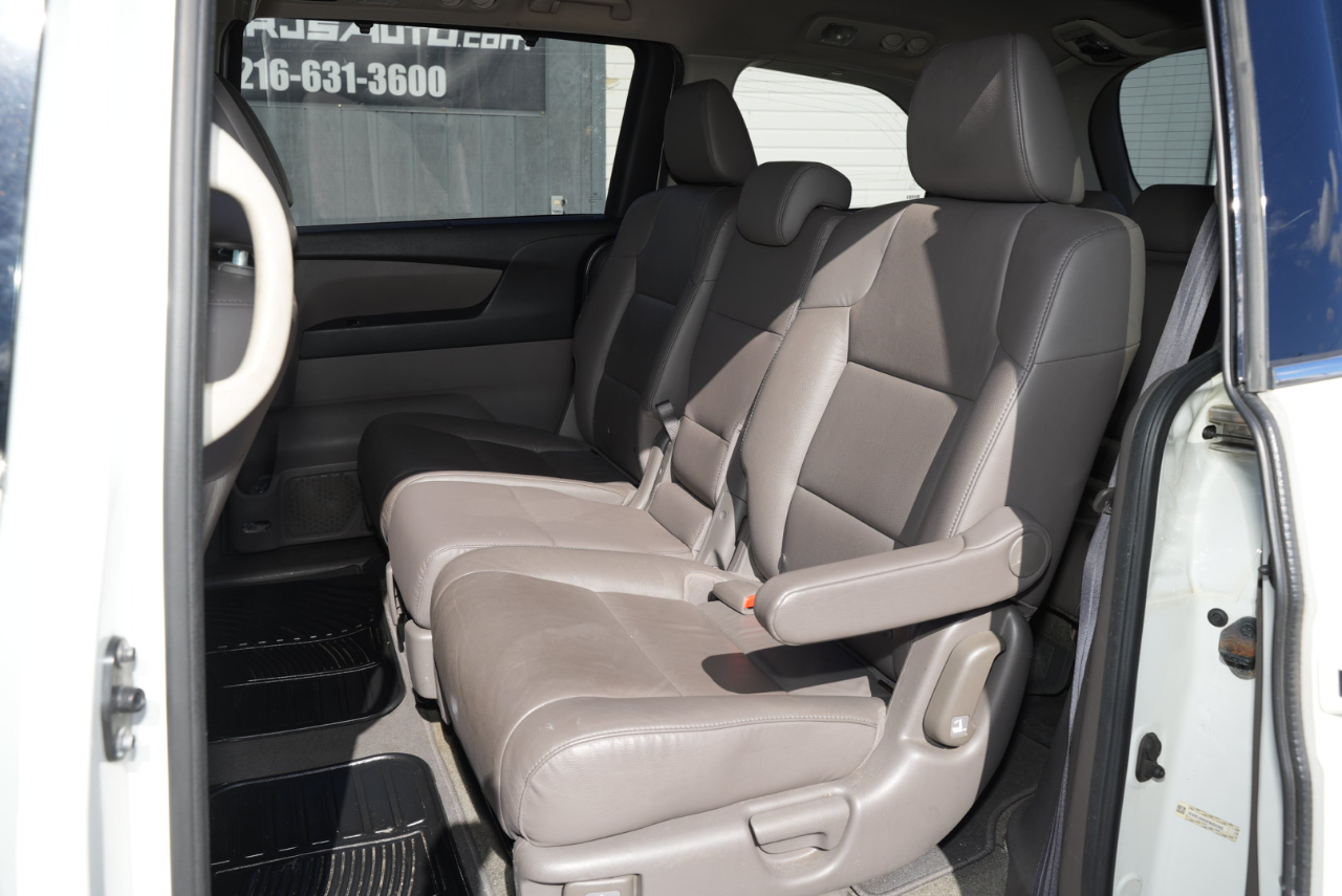 ARJ'S AUTO SALES IS PROUD TO PRESENT THIS LOADED 2015 HONDA ODYSSEY TOURING ELITE. WELL KEPT WITH A 1-OWNER/CLEAN CARFAX/27 SERVICE RECORDS HISTORY! THE WHITE DIAMOND PEARL METALLIC EXTERIOR COMPLIMENTS THE SPACIOUS TRUFFLE PREMIUM LEATHER INTERIOR. WELL APPOINTED WITH A MOONROOF, HEATED LEATHER, NAVIGATION, BACK-UP CAMERA WITH FRONT AND REAR PERIMETER ALERT, LANE DEPARTURE WARNING, FORWARD COLLISION ALERT, DVD REAR ENTERTAINMENT WITH REMOTE/DUAL HEADSETS POWER WINDOWS, LOCKS AND MIRRORS, KEYLESS ENTRY, AND CRUISE CONTROL WITH AUTO PILOT. IT EVEN HAS POWER SLIDING DOORS AND LIFT-GATE PLUS TRIPLE ZONE CLIMATE CONTROL. THREE ROWS OF SEATS CAN BE CUSTOMIZED FOR DIFFERENT NEEDS. THE 3.5L V-6 HAS PLENTY OF POWER TO MOVE FAMILY AND CARGO. ALLOY WHEELS HAVE NEW FIRESTONE TIRES. FAMILY FRIENDLY AT A FAMILY FRIENDLY PRICE!