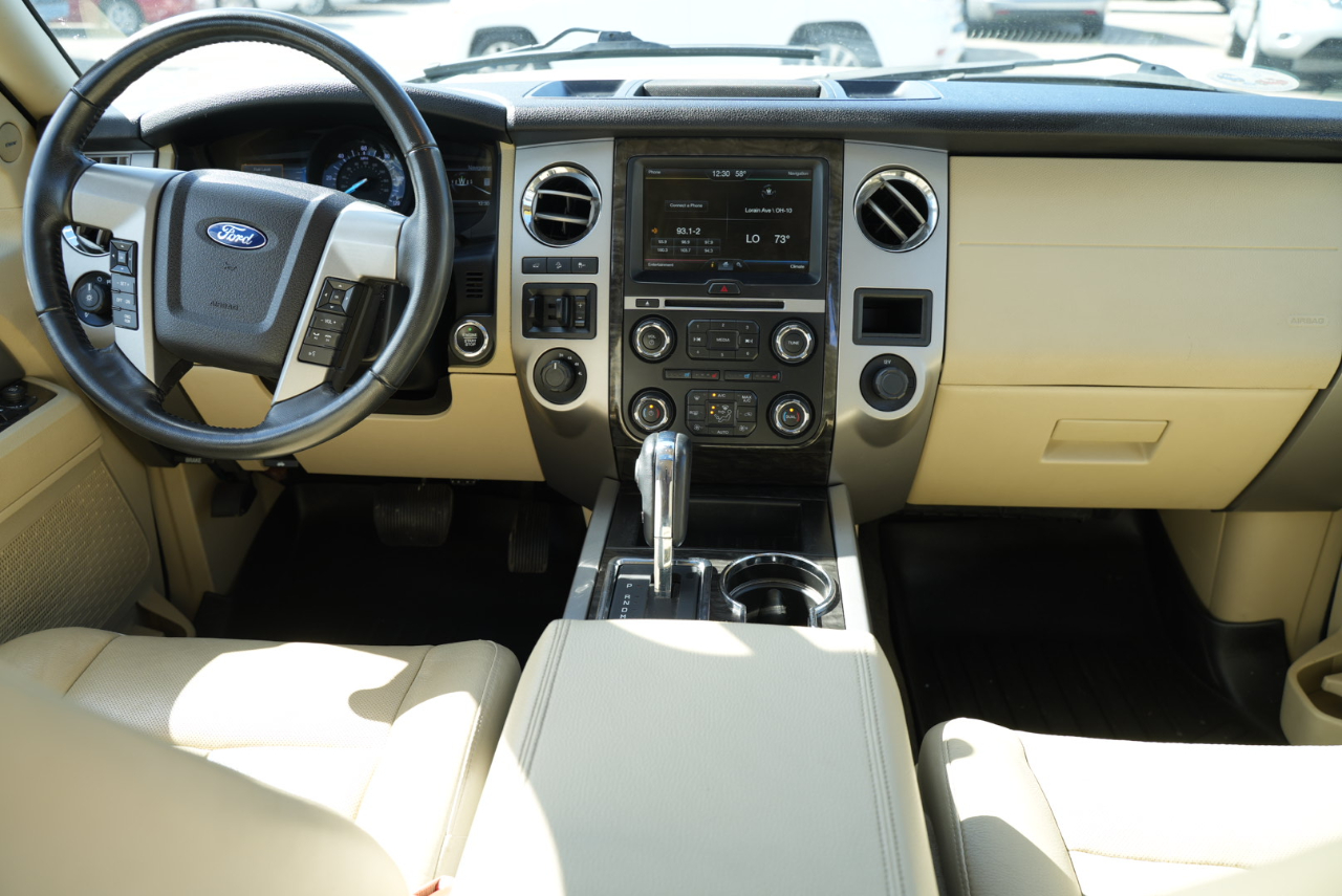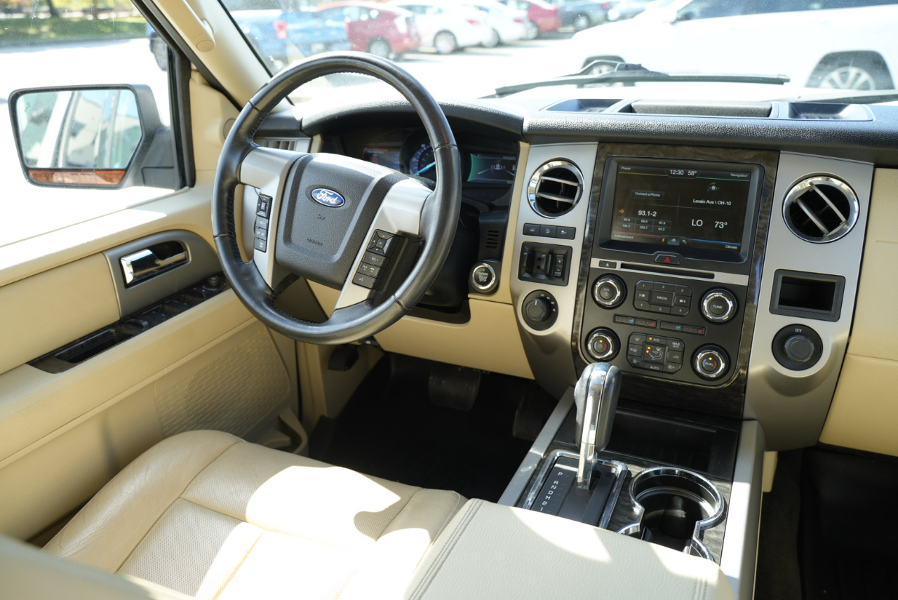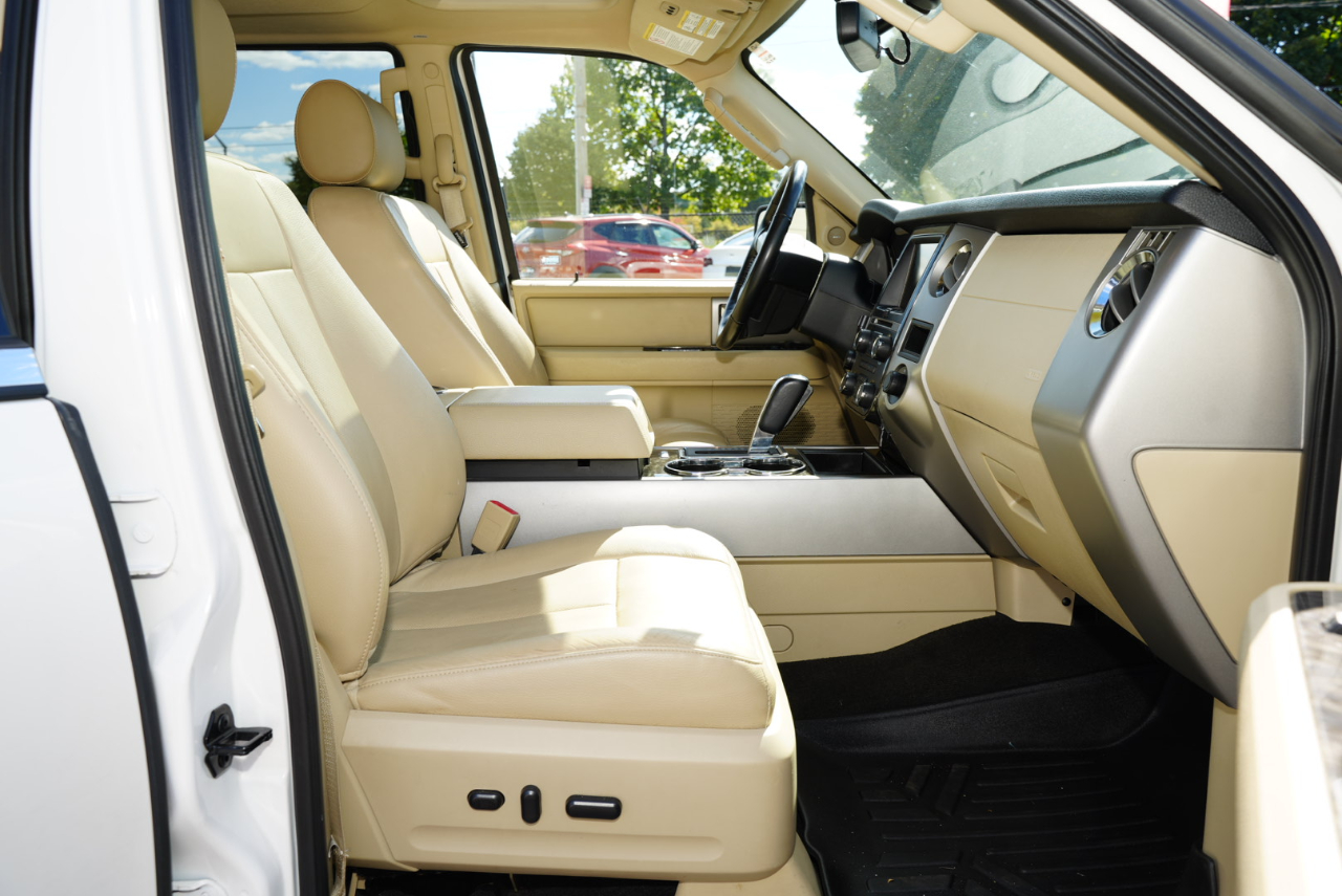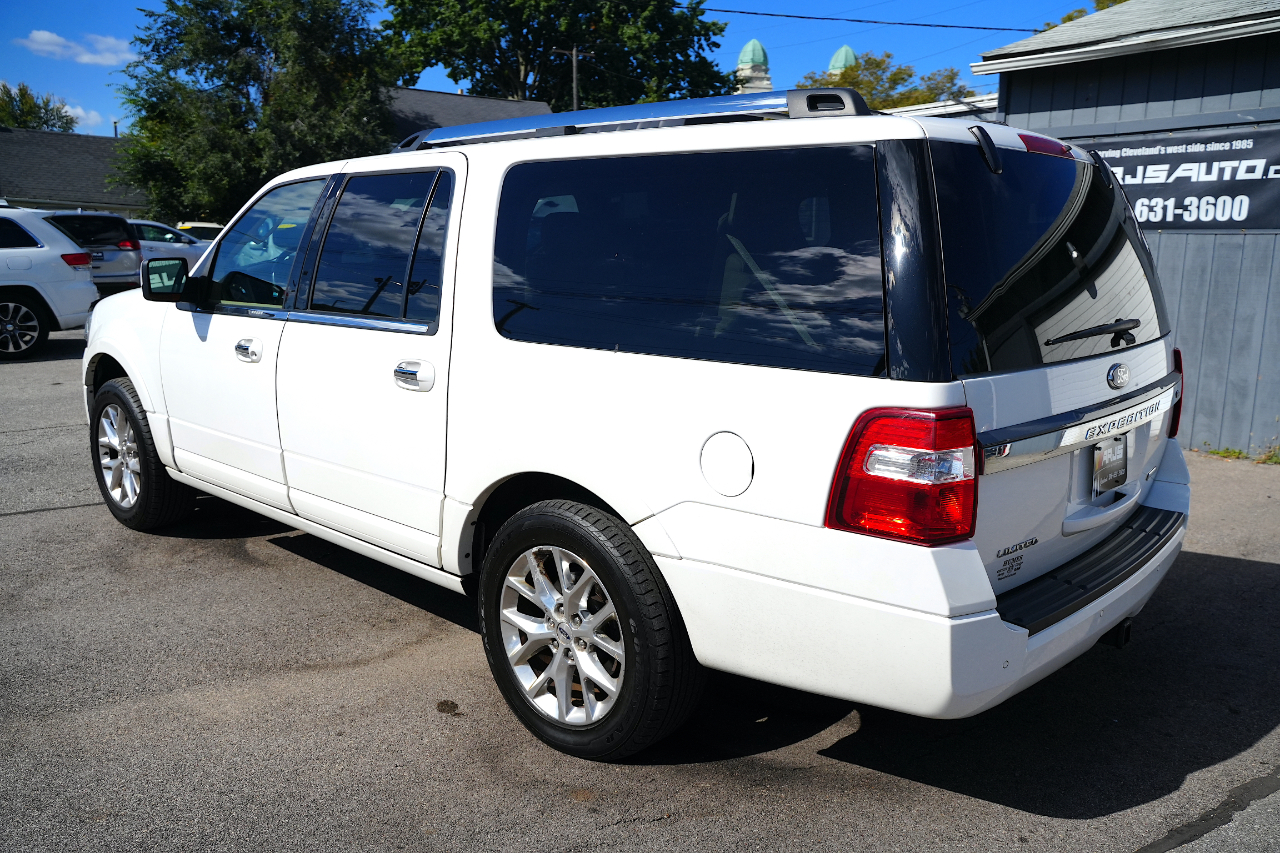 ARJ'S AUTO SALES IS PROUD TO PRESENT THIS 2015 FORD EXPEDITION LIMITED EL 4WD. WELL MAINTAINED WITH 31 SERVICE RECORDS CARFAX HISTORY. THE EXTERIOR IS WHITE PLATINUM METALLIC TRI-COAT. A VERY WELL EQUIPPED AND SPACIOUS DUNE LEATHER INTERIOR IS FOUND INSIDE. A MOONROOF, NAVIGATION SYSTEM, REAR CAMERA WITH REVERSE SENSING, BLIND SPOT ALERT, REAR HEADREST DVD ENTERTAINMENT WITH REMOTES, TRIPLE ZONE CLIMATE CONTROL, PREMIUM SONY AUDIO FEATURING CD/XM SATELLITE RADIO, POWER REAR LIFT GATE, HEATED/COOLED FRONT SEATS, HEATED REAR SEATS, HEATED MIRRORS, REMOTE START, AND STEERING WHEEL CONTROLS FOR THE STEREO ARE FOUND IN THE LEATHER AND WOOD GRAIN INTERIOR. THREE ROWS OF SEATS THAT CAN BE CONFIGURED FOR PEOPLE OR CARGO WITH A POWER FOLDING THIRD ROW. WITH A 3.5L V-6 AND SELECTABLE 4WD, THIS EXPEDITION IS READY FOR YOU! BRUSHED ALUMINIUM WHEELS HAVE NEW GOODYEAR-EAGLE TIRES ON THEM PAIRED WITH POWER RETRACTABLE RUNNING BOARDS. A TOW PACKAGE IS INCLUDED AS WELL. GREAT VALUE ON A GREAT FAMILY VEHICLE!