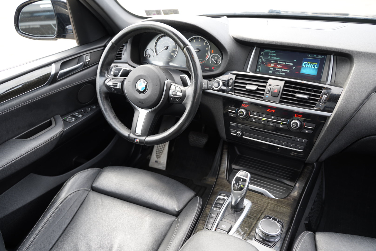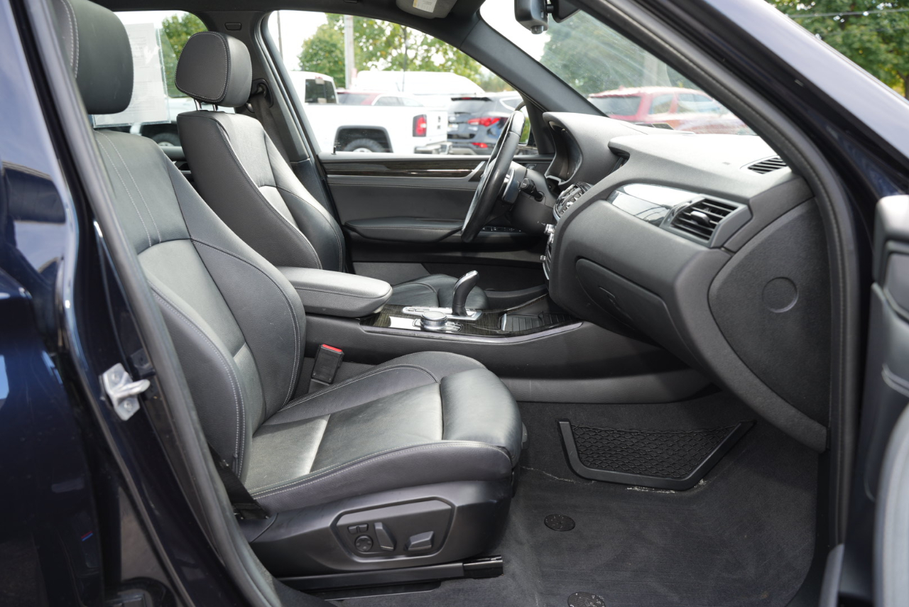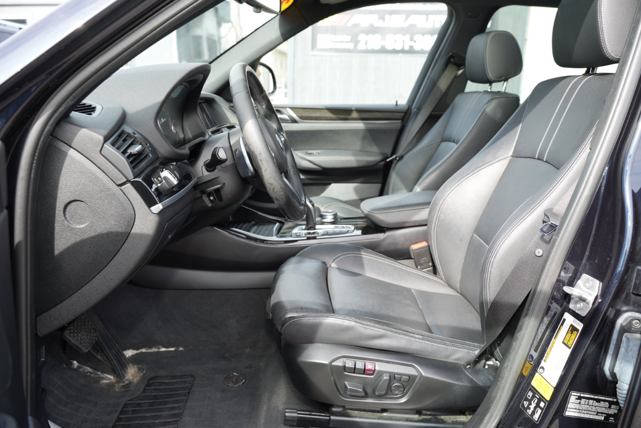 ARJ'S AUTO SALES IS PROUD TO PRESENT THIS 2017 BMW X3 XDRIVE28i AWD! GREAT CONDITION AND WELL MAINTAINED WITH A CLEAN CARFAX HISTORY!! THE MIDNIGHT BLUE METALLIC EXTERIOR WITH M PERFORMANCE ACCENTS OPENS TO THE WELL EQUIPPED CHARCOAL BLACK LEATHER INTERIOR WITH DARK OYSTER ACCENTS. EQUIPPED WITH A MOONROOF, KEYLESS ENTRY, HEATED FRONT SEATS, NAVIGATION, PREMIUM AUDIO FEATURING XM SATELLITE RADIO WITH STEREO CONTROLS ON THE STEERING WHEEL, PUSH BUTTON START, POWER WINDOWS, LOCKS AND MIRRORS, CD, AND CRUISE. THE 2.0L 4CYL ENGINE PAIRS WITH AN EIGHT SPEED AUTO TO GIVE YOU FUEL ECONOMY AND AMPLE POWER. THE SHARP M SPORT ALLOY WHEELS HAVE LIKE NEW PERFORMANCE TIRES AS WELL COUPLED WITH AUTOMATIC AWD.